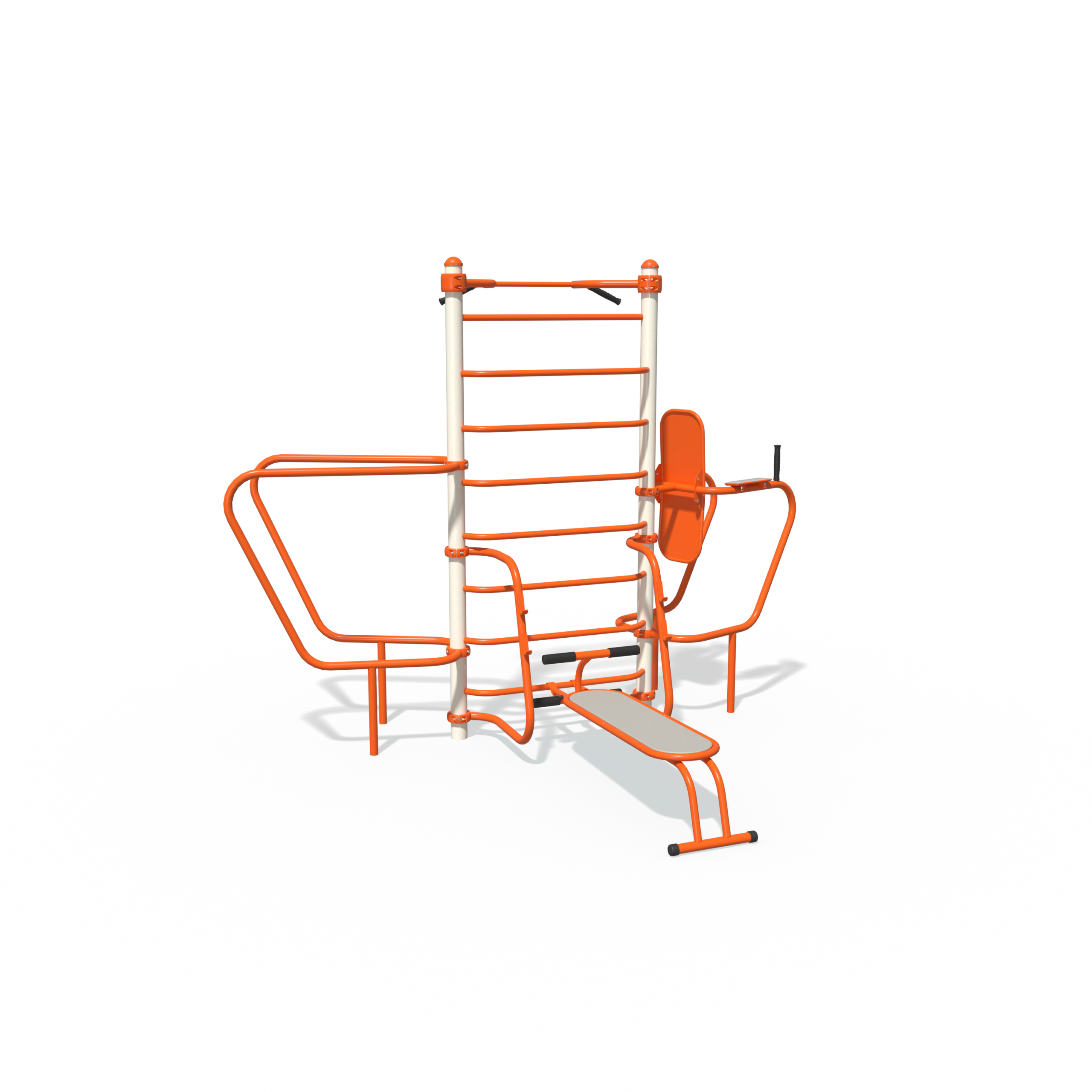 The MF 3.6 multifunctional outdoor training unit is designed to support a variety of classic strength and bodyweight exercises. Ideal for outdoor gyms, parks, and residential installations, it allows users to train the upper body, core, and lower body using their own bodyweight resistance.
